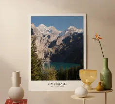 Questa fotografia cattura il tranquillo paesaggio montano intorno a Grindelwald, incorniciato da prati ondulati e dalle imponenti Alpi Bernesi. La luce morbida e i dettagli nitidi evidenziano il contrasto tra la vita del villaggio e le aspre cime sovrastanti. Una scena senza tempo che riflette il fascino tranquillo e la forza naturale di questa iconica valle svizzera.