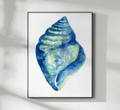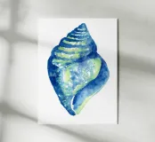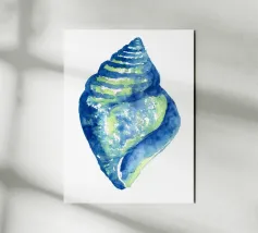 A serene watercolor study of a seashell rendered in layered blues and soft sea-green tones. Loose, transparent washes capture the natural curves and subtle textures of the shell, creating a sense of lightness and calm. Minimal and organic, the composition feels fresh and timeless—perfect for coastal, minimalist, or spa-inspired interiors. This artwork brings a quiet reminder of the shoreline, offering softness, balance, and an easy coastal elegance to any space.