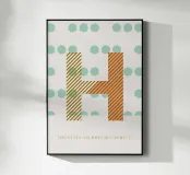 H-TYPEFACE in un design senza tempo - poster tipografico con colori vivaci e un gioco di forme sullo sfondo.