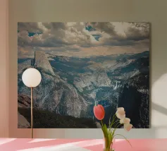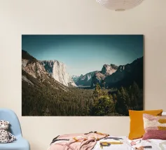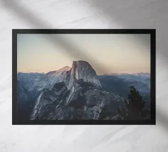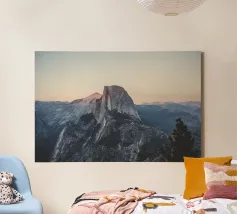 Trasportatevi nei paesaggi mozzafiato della California con la fotografia di Half Dome. Questo pezzo, che cattura perfettamente il fascino di uno dei punti di riferimento più iconici degli Stati Uniti, presenta una fotografia vivida della formazione rocciosa dell'Half Dome al tramonto. Le tonalità radiose del sole al tramonto dipingono un panorama mozzafiato sul famoso paesaggio dello Yosemite National Park, aggiungendo calore e drammaticità a qualsiasi spazio. Immergetevi nella tranquillità dell'aria aperta senza lasciare il comfort della vostra casa con questo splendido omaggio alle meraviglie naturali della California.