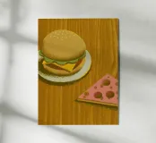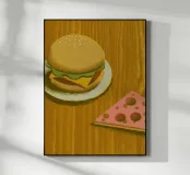 Il mix perfetto di due cibi preferiti! Questo disegno presenta un delizioso hamburger e una pizza con dettagli appetitosi.