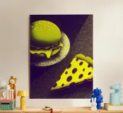 Il mix perfetto di due cibi preferiti! Questo disegno presenta un delizioso hamburger e una pizza con dettagli appetitosi.