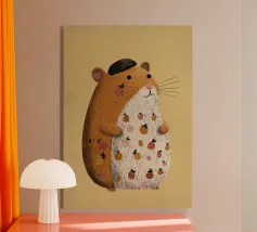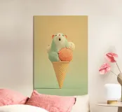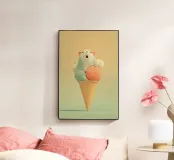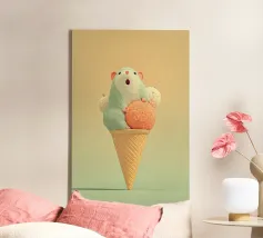 Una soffice sorpresa nel vostro gelato! Questa stampa giocosa e dai colori pastello raffigura un criceto dagli occhi spalancati, accoccolato tra palline di gelato in un cono di cialda. Perfetta per le camere dei bambini, per le camerette o per tutti coloro che amano un'arte carina e stravagante con un tocco moderno.