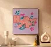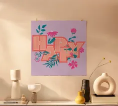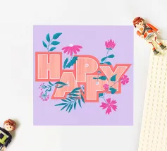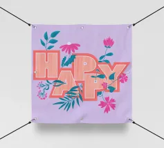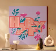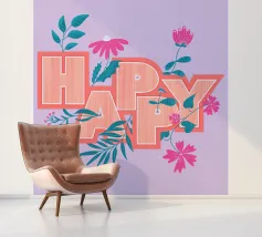 La scritta "Happy" colpisce per il suo layout giocoso. Le lettere di colore arancione sono disposte in modo dinamico e decorate con fiori. Questo design senza tempo diffonde energia positiva ed è perfetto per etichettare quaderni, computer portatili, bottiglie d'acqua o altri oggetti personali con un messaggio allegro.