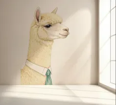 Un allegro alpaca dai colori tenui e dal sorriso amichevole, perfetto per rallegrare la cameretta dei bambini con calore e allegria.