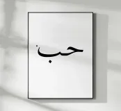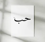 حب amore in arabo. Tipografia in nero e bianco (trasparente). È possibile cambiare il colore dello sfondo. Poster tipografico minimalista.