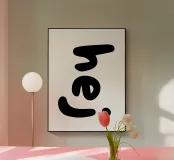 Questo quadro tipografico minimalista con la parola svedese "hej" - il simpatico modo scandinavo di dire "ciao" - crea immediatamente un'atmosfera calda e invitante. Le linee pulite, la tipografia moderna e il design di ispirazione nordica ne fanno un'attrazione senza tempo per il soggiorno, l'ufficio, il corridoio o il bar.