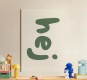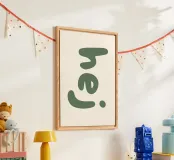 Dieses minimalistische Typografie-Bild mit dem schwedischen Wort „hej“ – der freundlichen skandinavischen Art „Hallo“ zu sagen – schafft sofort eine warme, einladende Atmosphäre. Klare Linien, moderne Typografie und ein nordisch inspiriertes Design machen es zu einem zeitlosen Hingucker für Wohnzimmer, Büro, Flur oder Café.
