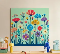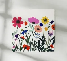 Questa illustrazione floreale dai toni caldi irradia la freschezza della primavera e l'arrivo di giornate più calde. Ispirata ai fiori di campo, offre un'atmosfera allegra e vivace, con toni morbidi di rosso, arancio e giallo, che ricordano il primo risveglio della natura.