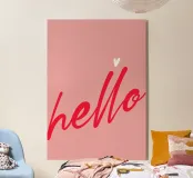 Ravvivate qualsiasi spazio con un saluto semplice e allegro. Questa stampa minimalista presenta la parola "ciao" in una fluida scrittura rossa con un dolce cuore bianco, il tutto su uno sfondo rosa tenue. Perfetta per ingressi, scrivanie o camerette.