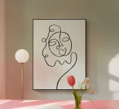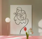 "Her" è un'opera d'arte lineare delicata e femminile che cattura l'essenza del fascino femminile con un tocco minimalista. L'opera è caratterizzata da un'unica linea continua che forma un volto grazioso, con una bocca a forma di cuore che aggiunge un elemento giocoso e romantico. La sua semplicità ed eleganza rendono "Her" un perfetto riflesso di morbidezza e femminilità, che irradia calore e bellezza.