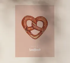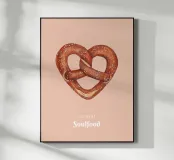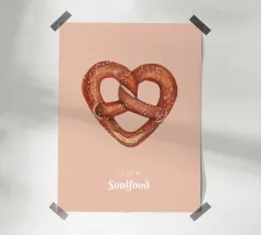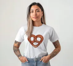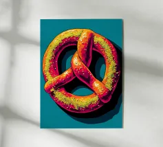 Für alle, die Brezn lieben: ein bayerisches Brezn-Herz mit feiner Lauge und grobem Salz, ein Laugenschmaus im Pastellkreide-Look.