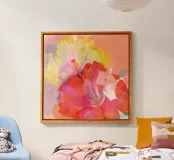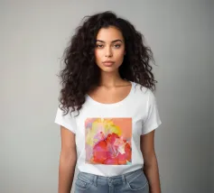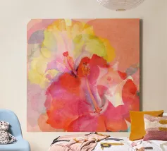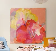 Questa colorata stampa digitale astratta di fiori di ibisco cattura la vibrante bellezza della fioritura tropicale attraverso forme espressive e una radiosa fusione di colori. Le morbide trame pittoriche e le forme fluide dei petali creano una composizione vivace e moderna, calda, gioiosa ed edificante. Perfetta per aggiungere un tocco di colore a soggiorni, studi, camere da letto o spazi creativi, quest'opera d'arte dona un tocco di energia tropicale ed eleganza artistica a qualsiasi stile di arredamento, da quello boho e costiero a quello minimal e contemporaneo.