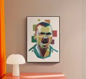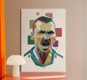 Ibra in stile WPAP è un sorprendente ritratto geometrico che mette in risalto la personalità audace e i tratti iconici del calciatore. Utilizzando colori vivaci e linee poligonali nitide, l'opera d'arte WPAP (Wedha's Pop Art Portrait) cattura l'espressione sicura e la presenza potente di Zlatan, simboleggiando il suo status leggendario e il suo atteggiamento impavido dentro e fuori dal campo.