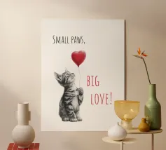 Quando le parole da sole non bastano, ditelo con un gatto! Questo simpatico gattino tiene saldamente tra le zampe un cuore rosso e ha un aspetto così toccante che nessun cuore rimane intatto. Design minimalista, con una chiara attenzione all'espressione e all'emozione. Un moderno motivo d'amore che è allo stesso tempo carino ed elegante. Che sia un regalo per San Valentino, un anniversario o semplicemente per dire "ti amo" a qualcuno, questo motivo porterà tanto cuore nella vostra casa.