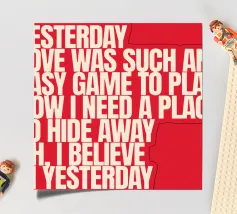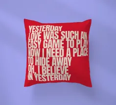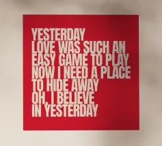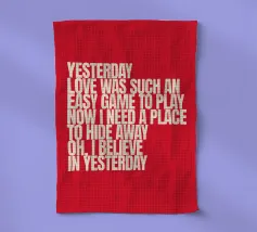 Caratterizzato da un pezzo del testo della canzone dei Beatles "Yesterday" in grassetto tipografico color crema su uno sfondo rosso, è un complemento ideale per l'ufficio, la caffetteria, lo studio musicale, la tana o il soggiorno. Un regalo perfetto per gli amanti della musica, per i fan del gruppo rock classico dei Beatles o per tutti coloro che ricordano con affetto la canzone "Yesterday" dei Beatles nella loro vita quotidiana.