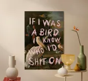 Se fossi un uccello mostra un dipinto del XIX secolo con diverse specie di uccelli e la scritta: Se fossi un uccello, so chi cagherei.