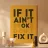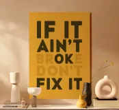If It Ain't Broken, Don't Fix It" (Se non è rotto, non aggiustarlo) è inciso a caratteri d'epoca su una tavola di legno, evocando semplicità e saggezza.