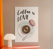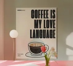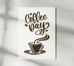Illustrazione piuttosto moderna di una tazza di caffè con una citazione tipografica