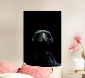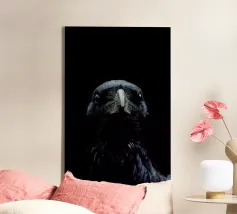 Ritratto di uccello corvo, bello e misterioso, lunatico e misterioso
