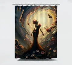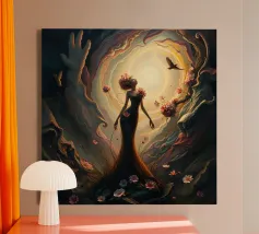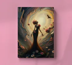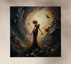Vortice surrealista di vita e decadenza in una scena buia e onirica... Questa immagine mostra un'ipnotica miscela di vita vibrante e cupa decadenza, con fiori delicati e decadenti e luce scintillante, in mezzo a un vortice di colori e texture, in uno stile surrealista dal romanticismo gotico.