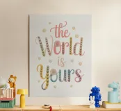 Poster dal design accattivante con lo slogan Il mondo è tuo - pieno di colori, fiori e tanta energia positiva.