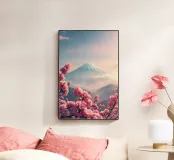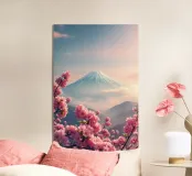Una vista mozzafiato del maestoso Monte Fuji che si staglia nel cielo limpido di primavera. In primo piano, delicati fiori di ciliegio (sakura) danzano nel vento, conferendo alla scena una poetica leggerezza. La combinazione tra la forza della natura e la bellezza dei fiori simboleggia la transitorietà, l'armonia e il profondo legame tra la cultura giapponese e la natura. Questa immagine cattura perfettamente la magia della stagione della fioritura dei ciliegi, ideale per opere d'arte da parete, calendari o diari di viaggio. Suggerimento: perfetto per tutti coloro che sognano di viaggiare o che vogliono portare un pezzo di tranquillità e di estetica giapponese nella loro casa.
