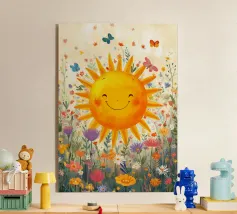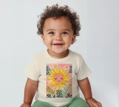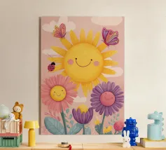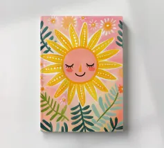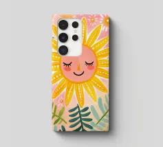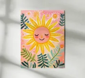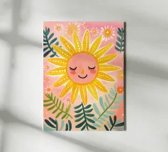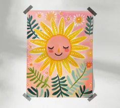 Questo incantevole motivo raffigura un sole sorridente con gli occhi chiusi, circondato da un morbido cielo rosa e da un fogliame verde e rigoglioso. Le tonalità armoniose del giallo e del rosa creano un'atmosfera rilassante e allegra, ideale per i bambini. Questo disegno irradia calma e calore ed è perfetto come poster, decorazione murale o per comodi top che faranno sorridere ogni bambino. Perfetto per i piccoli sognatori e gli amanti della natura che vogliono esprimere il loro amore per il sole e i colori tenui dell'estate.