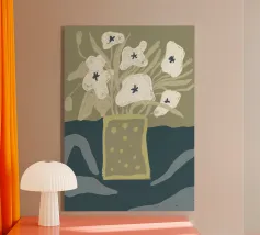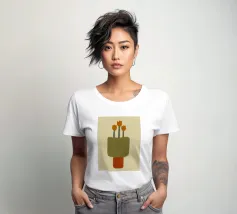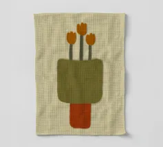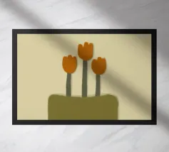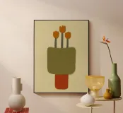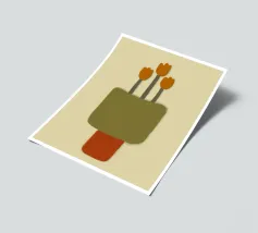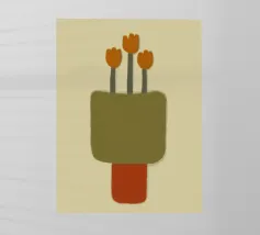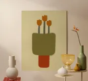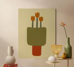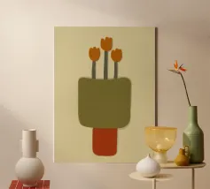 Questa illustrazione minimalista mostra un bouquet floreale di tulipani in un vaso verde. I toni terrosi dell'arancio, del verde salvia e del beige conferiscono all'illustrazione un moderno stile boho. Ideale per l'interior design scandinavo, porta un tocco di natura in casa.
