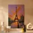 Questo dinamico dipinto impressionista raffigura la Torre Eiffel che risplende sotto un vibrante tramonto. Il gioco di luci e ombre crea una straordinaria gamma di colori, dal giallo oro al viola intenso. Le pennellate strutturate conferiscono profondità al cielo, mentre il riflesso scintillante del canale esalta l'armonia della composizione. Incorniciata da alberi e strade parigine, la torre rimane il fulcro, rappresentando il fascino senza tempo della capitale francese.