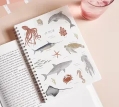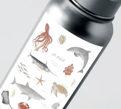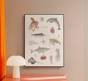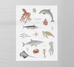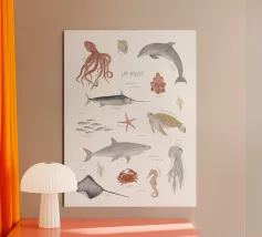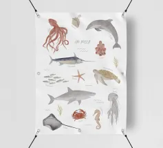 POSTER DIDATTICO "NEL MARE Questo poster è un simpatico accessorio per la cameretta che aiuta i bambini a conoscere meglio la fauna marina. Esiste anche un poster educativo abbinato "On safari".
