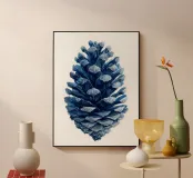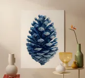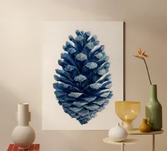 Un acquerello straordinariamente moderno di una pigna, resa in ricche tonalità indaco e ardesia fredda. Questo pezzo bilancia la texture naturale con un'audace semplicità, ideale per l'arredamento ispirato ai boschi, per gli interni moderni e rustici o per l'arte murale stagionale con un tocco fresco e minimalista.