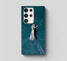 Coppia in bianco e nero della vecchia Hollywood che danza tra le stelle. Collage di arte spaziale vintage surreale e romantico di MsGonzalez
