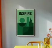 Questo moderno poster in stile Bauhaus porta una ventata di aria fresca in qualsiasi casa o ufficio grazie alla sua chiarezza geometrica e all'armoniosa combinazione di colori. L'attenzione si concentra sulla scritta ispiratrice "INSPIRE", che troneggia in un carattere morbido e moderno su una composizione di forme chiare in varie tonalità di verde. Lo stile minimalista e la tavolozza di colori pacati rendono questo design la scelta ideale per spazi di lavoro creativi, soggiorni moderni o spazi minimalisti in cui è necessario un accento calmo ma potente.