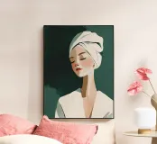 Un ritratto modellato dall'attenzione interiore piuttosto che dall'espressione esteriore. Il profilo girato e gli occhi chiusi suggeriscono un paesaggio privato, uno spazio in cui il pensiero si deposita e l'emozione trova equilibrio. Con un colore sobrio e una semplicità sicura, la composizione evoca un orizzonte interiore: tranquillo, ampio e profondamente chiuso in se stesso.