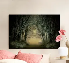Uscite dalle ombre profonde e entrate nella luce. Questa incantevole fotografia vi porta in un viaggio attraverso un magico tunnel di alberi antichi e nodosi. Il sentiero oscuro e misterioso conduce lo sguardo in avanti, verso un'apertura luminosa che promette un mondo di bellezza. Metafora potente e piena di speranza della perseveranza e della ricerca della propria strada, quest'opera è un omaggio alla luce che sempre ci attende. Portate questo senso di mistero, magia e profondo ottimismo nella vostra casa.