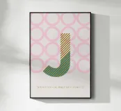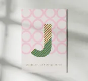 J-TYPEFACE in un design senza tempo - poster tipografico con colori vivaci e un gioco di forme sullo sfondo.