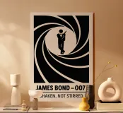 James Bond - 007 Stampa, Poster cinematografico alternativo, Bianco e nero, Stampe di qualità minimalista, Cine, Spia, Agente dei servizi segreti, Regalo per i fan del cinema