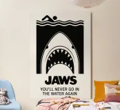 Stampa Jaws, Poster cinematografico alternativo, Bianco e nero, Stampe minimaliste di qualità, Cine, Orca, Attacco dello squalo, Grande squalo bianco, Regalo per i fan del cinema
