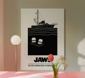 Stampa Jaws, Poster cinematografico alternativo, Arte murale minimalista, Bianco e nero, Stampe di alta qualità, Pesce cattivo, Squalo, Regalo per i fan del cinema, Arte vettoriale