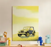 Sentite lo spirito dell'avventura! Questo disegno presenta un'icona Jeep elegante e dettagliata, perfetta per gli amanti dell'avventura off-road e di uno stile di vita spensierato.