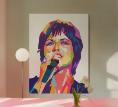 Un'audace e colorata illustrazione WPAP (Wedha's Pop Art Portrait) di Jeff Beck, il leggendario chitarrista noto per il suo sound innovativo e la sua tecnica magistrale. L'opera d'arte presenta forme geometriche nitide e colori vibranti e contrastanti, che catturano la sua energia espressiva e il suo spirito artistico. Il suo look iconico, con capelli fluenti e sguardo intenso, è stilizzato attraverso modelli angolari dinamici, che riflettono il suo impatto rivoluzionario sulla musica rock e blues. Questo ritratto WPAP trasforma l'eredità di Beck in un capolavoro visivo di grande impatto, che incarna la sua presenza elettrizzante e la sua influenza senza tempo.
