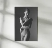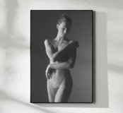 Uno scatto di nudo artistico in bianco e nero di una giovane donna.