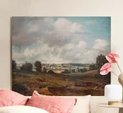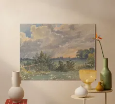 John Constable è stato un rinomato pittore di paesaggi inglese del XIX secolo, noto soprattutto per le sue romantiche rappresentazioni della campagna inglese, in particolare dell'area intorno alla sua casa nel Suffolk, che divenne nota come "Constable Country". Nato nel 1776, Constable rifiutò i paesaggi idealizzati a favore di scene naturalistiche, catturando la bellezza della vita rurale con grande attenzione alla luce, all'atmosfera e alle formazioni nuvolose. Tra le sue opere più famose ricordiamo The Hay Wain e Dedham Vale. Sebbene non sia stato molto apprezzato durante la sua vita, Constable è oggi celebrato come uno dei più grandi paesaggisti britannici.