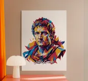 Onorate la leggendaria figura di Giulio Cesare con questo vivace disegno Pop Art di WPAP. Utilizzando audaci forme geometriche e un'accattivante tavolozza di colori, quest'opera d'arte reinterpreta l'iconico condottiero romano in uno stile moderno e astratto. La tecnica WPAP (Wedha's Pop Art Portrait) cattura il genio militare e l'influenza politica di Cesare, simboleggiando il suo ruolo fondamentale nella trasformazione della Repubblica Romana in Impero Romano. Perfetto per gli appassionati di storia, gli amanti dell'arte e gli ammiratori dell'antichità classica, questo disegno è un tributo unico a uno dei leader più influenti della storia.
