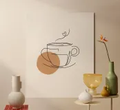 Tazza da caffè composta da linee con un cuore. Sia lo sfondo che la macchia di caffè marrone chiaro. Generato con AI (Canva), tra le altre cose.