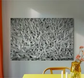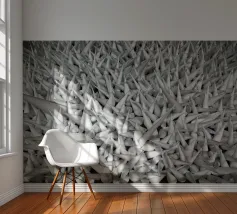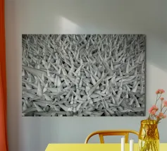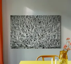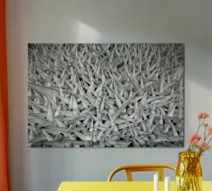 Poster con texture geometrica intensa! Questa immagine di grande impatto presenta un campo denso di forme coniche bianche e nitide che creano una texture aggressiva e ad alto contrasto e un'illusione ottica. La tavolozza monocromatica di bianco e grigio evidenzia l'effetto 3D e la ripetizione geometrica. Questa opera d'arte moderna e astratta è perfetta per un soggiorno, un ufficio o uno spazio minimalista che necessiti di una dichiarazione audace e d'impatto. Ideale per gli amanti del design concettuale e architettonico. Astratto, texture, geometrico, monocromatico, bianco e nero, arte moderna, concettuale, minimalista, soggiorno, arredamento ufficio, effetto 3D