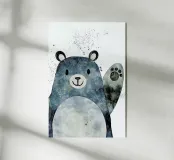 Questo allegro poster per bambini presenta un simpatico orso che saluta i più piccoli con un amichevole saluto! I colori tenui e lo stile artistico e giocoso rendono quest'opera d'arte un accento perfetto per la stanza di ogni bambino. La miscela di acquerelli e schizzi conferisce al poster un tocco creativo che stimola l'immaginazione e crea un'atmosfera allegra. Un regalo ideale per i giovani amanti della natura e degli animali che rallegrerà la stanza!
