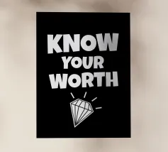 Design motivazionale "Conosci il tuo valore" con un diamante