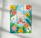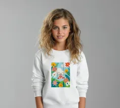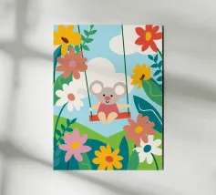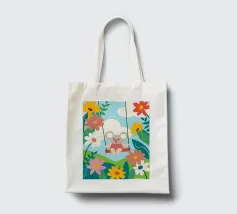 Questa splendida illustrazione raffigura un tranquillo koala in mezzo a fiori in fiore, creando un'atmosfera pacifica per la casa o l'ufficio.